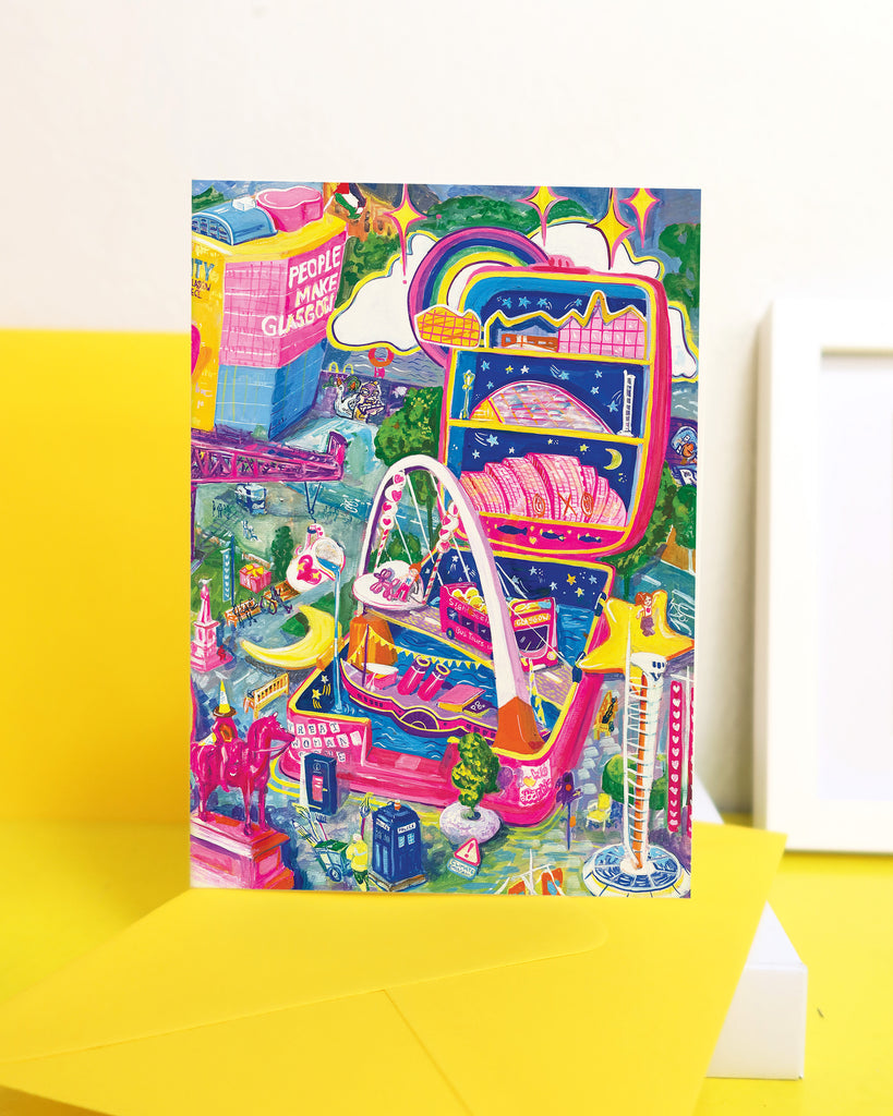 💝The air is alive with pink nostalgic joy in this Polly Pocket themes Glasgow. So many details to discover, including... Glasgow iconic architecture, from the transport  museum to the "People Make Glasgow " building. Check out for shoutouts to local street artists.💖
