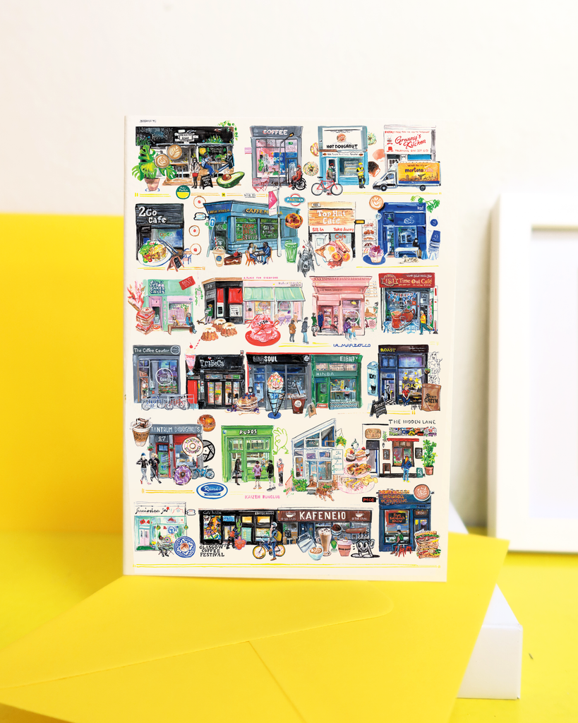 This card showcases the beloved coffee spots of Partick and Finnieston, from Meadow Road to Finnieston Tea. It captures the moments that make these cafés special—whether it’s the buzz of a daily commute, a relaxed weekend catch-up, or a well-earned treat. A tribute to the community and the warmth these spaces bring to our lives.