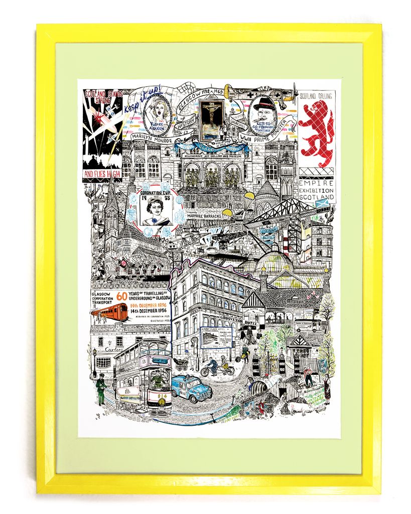 Originally commissioned by the Hilton, there are 4 originals paintings now hanging in the Grosvenor Hotel hotel lobby on Byres Road. The 4 designs of the Grosvenor series cover the history of the local area of the hotel.